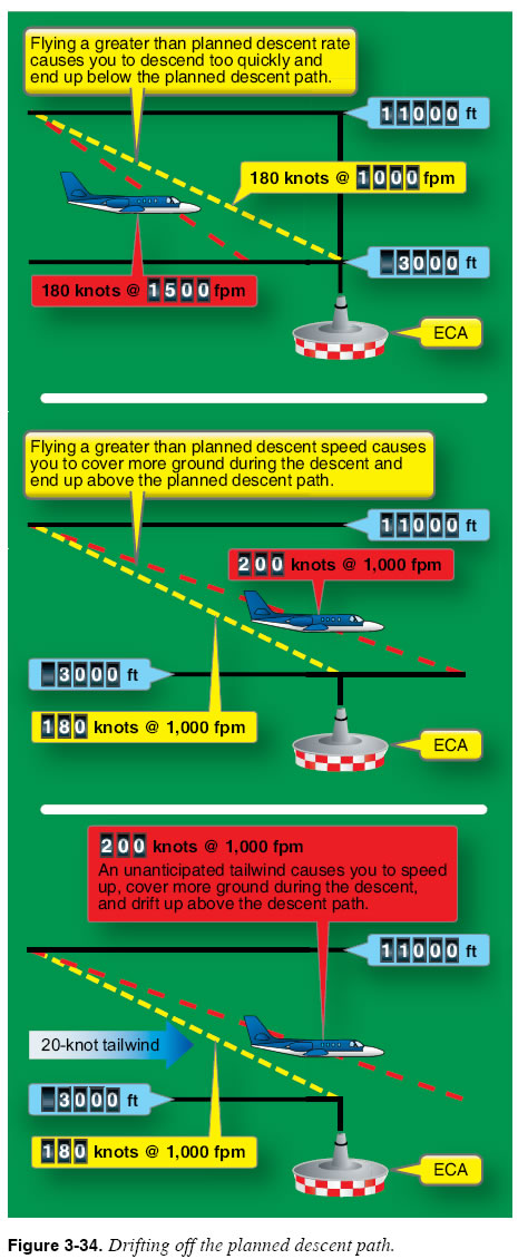 If you are at a different altitude at any of these points, you will not cross ECA at the required 3,000 feet unless corrective action is taken. Four things can cause you to drift from a planned descent path: