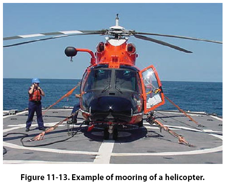Helicopters, like other aircraft are secured to prevent structural damage, which can occur from high-velocity surface winds.