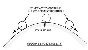 Positive stability can be illustrated by a ball inside of a bowl. If the ball is displaced from its normal resting place at the bottom of the bowl, it will eventually return to its original position at the bottom of the bowl. [Figure 1-19]