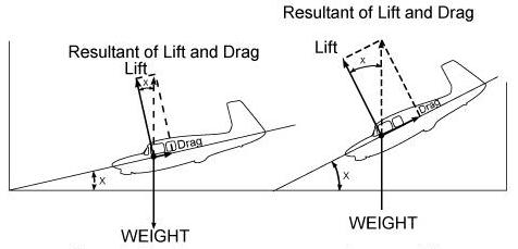 This angle (X) between the glidepath and the horizontal is called the glide angle. Further examination of this diagram will show that as drag is reduced and speed increased, the smaller will be the glide angle; therefore, the steepness of the glidepath depends on the ratio of lift to drag. When gliding at the angle of attack for best L/D, least drag is experienced, and the flattest glide will result. The L/D is a measure of the gliding efficiency or aerodynamic cleanness of the airplane. If the L/D is 11/1, it means that lift is 11 times greater than drag.