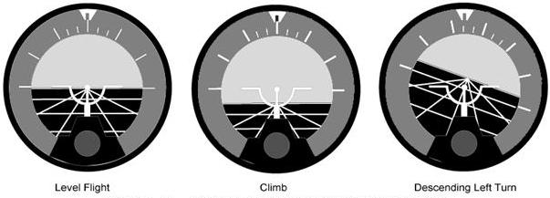 of the real aircraft to the actual horizon. The instrument gives an instantaneous