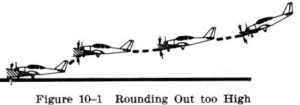 Sometimes when the airplane appears to temporarily stop moving downward, the roundout has been made too rapidly and the airplane is flying level too high above the runway. Continuing the roundout would further reduce the airspeed, resulting in an increase in angle of attack to the critical angle. This would result in the airplane stalling and dropping hard onto the runway. To prevent this, the pitch attitude should be held constant until the airplane decelerates enough to again start descending. Then the roundout can be continued to establish the proper landing attitude. This technique should be used only when there is adequate airspeed. It may be necessary to add a slight amount of power to keep the airspeed from decreasing excessively and to avoid losing lift too rapidly.
