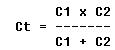 In the series arrangement of two capacitors, C1 and C2, the total capacitance is given by the equation: