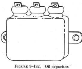 In radio and radar transmitters, voltages high enough to cause arcing, or breakdown, of paper dielectrics are often employed. Consequently, in these applications capacitors that use oil or oil impregnated paper for the dielectric material are preferred. Capacitors of this type are considerably more expensive than ordinary paper capacitors, and their use is generally restricted to radio and radar transmitting equipment (figure 8-182).