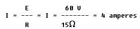 The Ohm's law formula for finding current is I = E/R. Since the battery voltage is 30 volts and the total circuit resistance is 15 ohms, the equation becomes