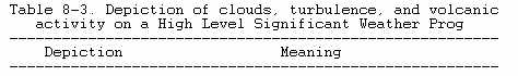Table 8-3 gives some examples of notations appearing on a High Level Significant Weather Prog chart.