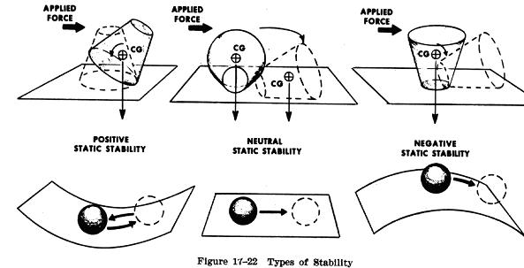 3. Positive Static Stability. The initial tendency of the airplane to return to the original state of equilibrium after being disturbed (Fig. 17-22).