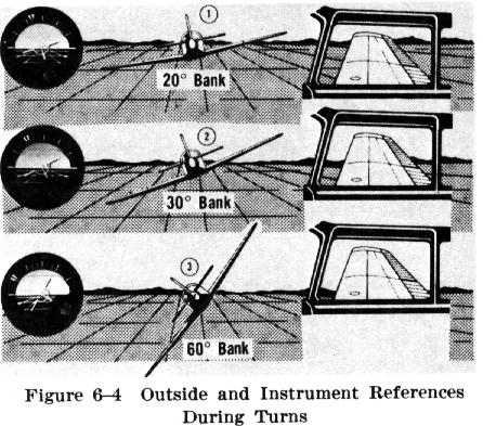 To establish the desired angle of bank, the pilot should use outside visual reference points as well as specific indications on the attitude indicator (Fig. 6-4).