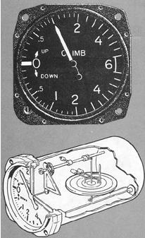 When the pressures are equalized in level flight, the needle reads zero. As static pressure in the diaphragm changes during entry to a climb or descent, the needle immediately shows a change of vertical direction. However, until the differential pressure stabilizes at a definite ratio, reliable rate indications cannot be read. Because of the restriction in air flow through the calibrated leak, a 6- to 9-second lag is required to equalize or stabilize the pressures.