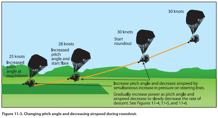 also be proportionate to the rate of closure with the ground. When the powered parachute appears to be