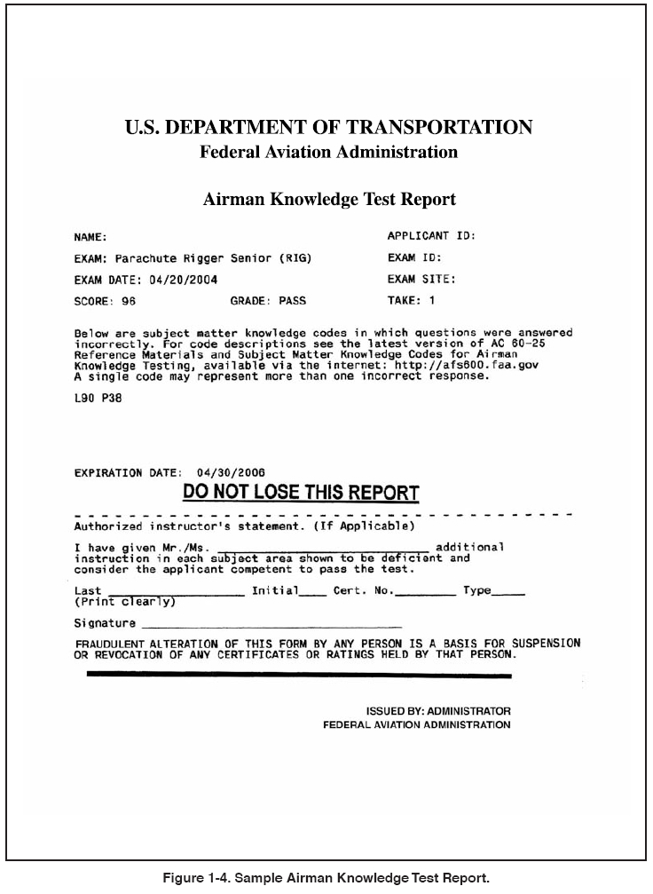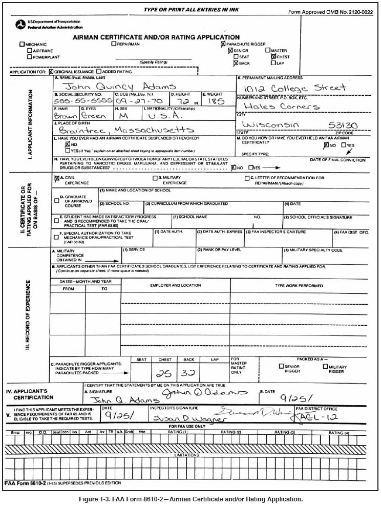 parachute rigger certificate [Figure 1-5 on page 1-5] and