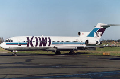 Kiwi first flew on September 21, 1992 using two refurbished 727-200s from Lufthansa on routes between Newark and Chicago and Orlando. It offered gourmet meals and expanded legroom of 36 inch pitch. Within one year Kiwi had fifteen planes and 1200 employees doing $116,000,000 in business.