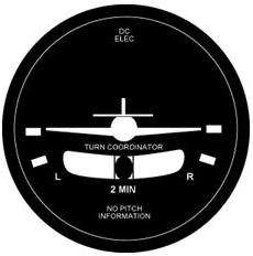 Turn Coordinator The turn coordinator shows the yaw and roll of the aircraft around the