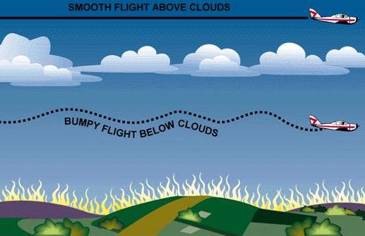 | Figure 5-10.—Convection currents form off-shore winds at night. | Figure 5-11.—Avoiding turbulence caused by convection currents by flying above the cloud level. |