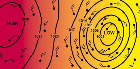 low pressure—bad weather.