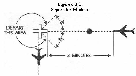 takes off before the arriving aircraft leaves a fix inbound not less than
