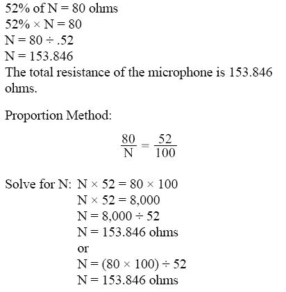 CHAPTER 1. Mathematics Finding a Number When a Percentage of It Is Known Example: Eighty ohms represents 52% of a microphone’s total resistance. Find the total resistance of this microphone.