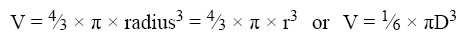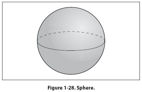 Sphere A solid having the shape of a ball is called a sphere. [Figure 1-28] A sphere has a constant diameter. The radius (r) of a sphere is one-half of the diameter (D). The formula for the volume of a sphere is given as: