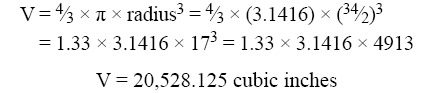 Example: A pressure tank inside the fuselage of a cargo aircraft is in the shape of a sphere with a diameter of 34 inches. What is the volume of the pressure tank?