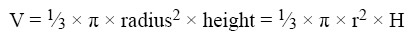Cone A solid with a circle as a base and with sides that gradually taper to a point is called a cone. [Figure 1-29] The formula for the volume of a cone is given as:
