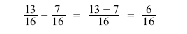 Therefore, the distance to the center of the hole from each of the plate edges is 2 23/32 inches and 113/16 inches. Reducing Fractions A fraction needs to be reduced when it is not in “lowest terms." Lowest terms means that the numerator and denominator do not have any factors in common. That is, they cannot be divided by the same number (or factor). To reduce a fraction, determine what the common factor(s) are and divide these out of the numerator and denominator. For example when both the numerator and denominator are even numbers, they can both be divided by 2. Example: The total travel of a jackscrew is 13/16 inch. If the travel in one direction from the neutral position is 7/16 inch, what is the travel in the opposite direction?