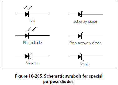 Special Purpose Diodes The unique characteristics of semiconductor material have allowed for the development of many specialized types of diodes. A short description of some of the more common diode types is given for general familiarization. Figure 10-205 illustrates the schematic symbols for some of the special purpose diodes.