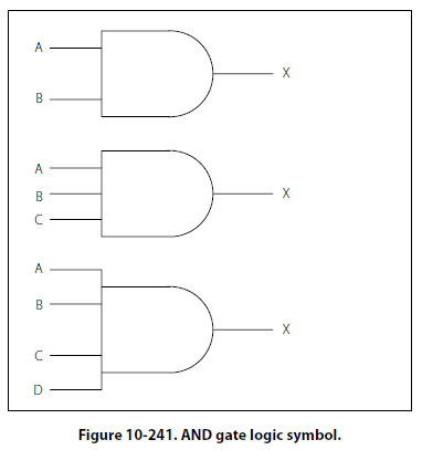 The AND Gate The AND gate is made up of two or more inputs and a single output. The logic symbol is shown in Figure 10-241.