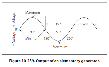 If the voltage induced throughout the entire 360° of rotation is plotted, the curve shown in Figure 10-259 results. This voltage is called an alternating voltage because of its reversal from positive to negative value — first in one direction and then in the other.