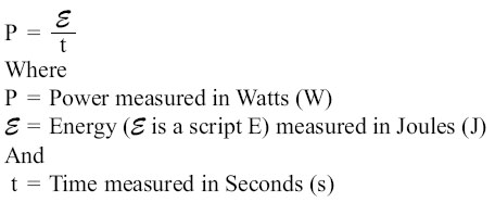 The unit measurement for power is the watt (W), which refers to a rate of energy conversion of 1 joule/second. Therefore, the number of joules consumed in 1 second is equal to the number of watts. A simple example is given below.