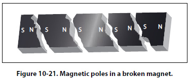 Figure 10-21 illustrates another characteristic of magnets. If the bar magnet is cut or broken into pieces,