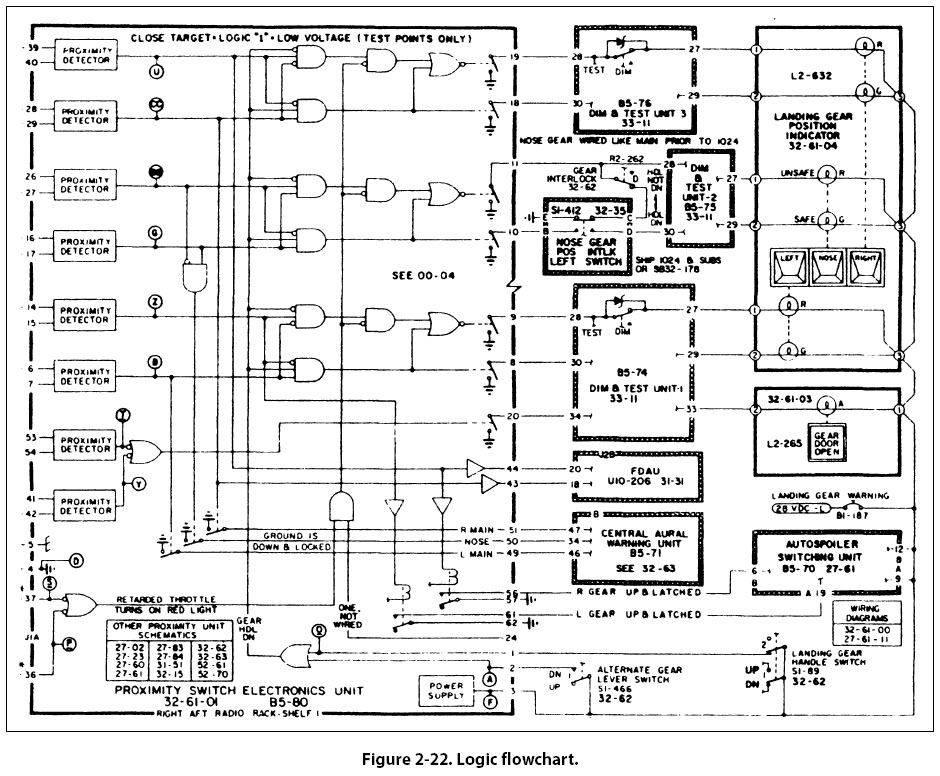 A logic flowchart [Figure 2-22] uses standardized symbols to indicate specific types of logic gates and their relationship to other digital devices in a system. Since digital systems make use of binary mathematics consisting of 1s and 0s, voltage or no voltage, a light pulse or no light pulse, and so forth, logic flowcharts consist of individual components that take an input and provide an output which is either the same as the input or opposite. By analyzing the input or multiple inputs, it is possible to determine the digital output or outputs. |