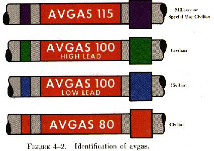 100/130 gasoline is manufactured (1975) in two grades - high lead, up to 4.6 milliliters of lead per gallon and low lead, not over 2.0 milliliters per gallon. The purpose being to eliminate two grades of lower octane fuel (80/87) and 91/96). The high lead will continue to be colored green whereas the low lead will be blue. The low lead will replace the 80/87 and 91/96 octane fuels as they are phased out. Engine manufacturers have prepared instructions to be followed in making adjustments necessary for changeover to the 100 octane fuel. |
