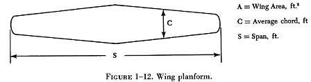 where A is the area expressed in square feet, S is the wing span, and C is the average chord.