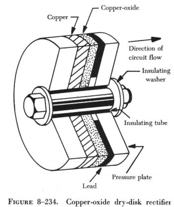 copper oxide and selenium dry disk rectifiers. The forward bias, or high