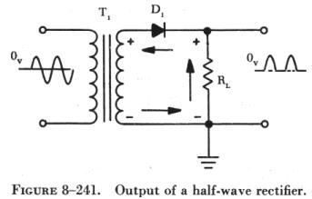 In figure 8-240 a diode is placed in series with a source of ac power and a load resistor. This is called a halfwave rectifier circuit.