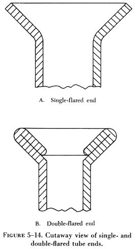 Two kinds of flares are generally used in aircraft plumbing systems, the single flare and the double flare. Flares are frequently subjected to extremely high pressures; therefore, the flare on the tubing must be properly shaped or the connection will leak or fail.