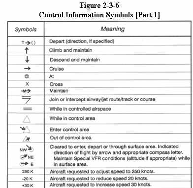 a climb/descend and maintain arrow, an at or above/below symbol, a cruise