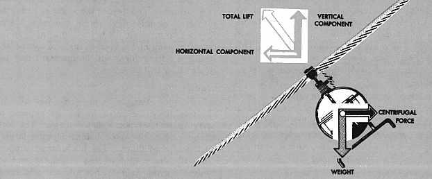 As the angle of bank increases, the total lift force is tilted more toward the horizontal, thus causing the rate of turn to increase because more lift is acting horizontally. Since the resultant lifting force acts more horizontally, the effect of lift acting vertically (vertical component) is decreased (fig. 25). To compensate for this decreased vertical lift, the angle of attack of the rotor blades must be increased in order to maintain altitude. The steeper the angle of bank, the greater the angle of attack of the rotor blades required to maintain altitude. Thus, with an increase in bank and a greater angle of attack, the resultant lifting force will be increased and the rate of turn will be faster.