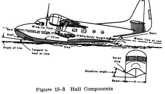 Research and experience have improved float and hull designs throughout the years. Figs. 15-2 and 15-3 illustrate the basic construction of a float and a flying boat. The primary consideration in float construction is the use of sturdy, lightweight material, designed hydrodynamically and aerodynamically for optimum performance.