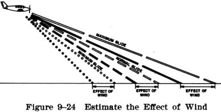 The judgment of altitude in feet, hundreds of feet, or thousands of feet is not nearly so important though, as the ability to estimate gliding angle and its resultant distance. The pilot who knows the normal glide angle of the airplane can estimate with reasonable accuracy, the approximate spot along a given ground path at which the airplane will land, regardless of altitude. But, the pilot who also has the ability to accurately estimate altitude, can judge just how much maneuvering is possible during the glide, which is important to the choice of landing areas in an actual emergency.