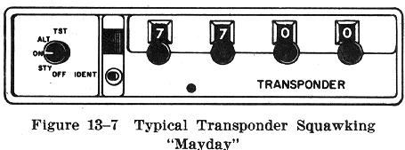 The procedures used in providing radar navigational guidance to pilots are very similar to those used for DF service. There are, however, certain terms in the use of transponders which the pilot must understand. When instructed to "Squawk" a certain code (number), the pilot should first ensure that the transponder is set to the specified 4 digit number and turned ON (not standby). If told to "Ident," the pilot should press the button marked as such on the transponder. When told to "Squawk MAYDAY" (the emergency position), the transponder should be set to 7700. The term "Vector" simply means the heading to fly to reach a certain location.