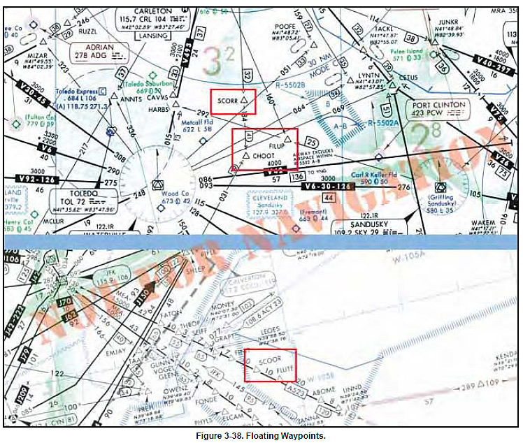 structure, and SID terminating points joining the enroute structure. In Figure 3-38, in the top example, a
