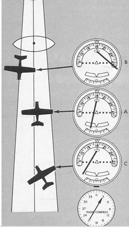 The localizer course is very narrow, normally 5°. This results in high needle sensitivity. With this course width, a full-scale deflection shows when the aircraft is 2.5° to either side of the centerline. This sensitivity permits accurate orientation to the landing runway. With no more than 1/4-scale deflection maintained, your aircraft will be aligned with the runway. High needle sensitivity also tends to encourage overcontrolling, until you learn to apply correct basic flying techniques for smooth control of the aircraft.