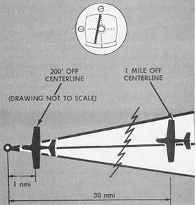 Aircraft displacement from course is approximately 200 ft. per