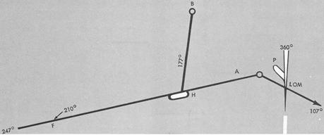 Application of Basic VOR Procedures (Fig. 8-11). Assume that you are tracking inbound on the 247 radial of VOR "A", using a single VOR receiver. You expect to hold at intersection "H" and transition from VOR "A" to the Outer Compass Locator for a localizer approach on the instrument landing system shown.