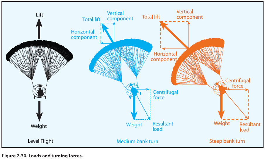 • In a banked turn, lift must be increased and load