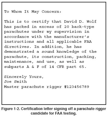 parachute rigger certificate [Figure 1-5 on page 1-5] and