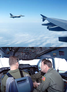 A310 jetliner flying over the In the Airbus’s cockpit, a tall, older man sat behind the pilots, telling them what to say and watching the fighters closely to see what they would do, how they would react, what they would say. This man, however, was no unruly passenger or terrorist. He was Air Force Col. Andy Morgan, the North American Aerospace Defense Command Inspector General. As he listened to the fighter pilots interact with the Airbus’s Canadian military flight crew, he was silently grading the pilots of Det. 1, making certain they followed the procedures NORAD set down in how to go about intercepting an airliner in this situation. |