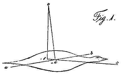 Having rendered the accomplishment of this object probable upon the general view of the subject, I shall proceed to point out the principles of the art itself. For the sake of perspicuity I shall, in the first instance, analyze the most simple action of the wing in birds, although it necessarily supposes many previous steps. When large birds, that have a considerable extent of wing compared with their weight, have acquired their full velocity, it may frequently be observed, that they extend their wings, and without waving them, continue to skim for some time in a horizontal path. Fig. I, in the Plate, represents a bird in this act.