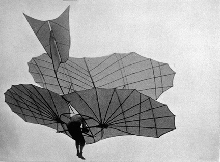 If one should not care to fold the apparatus, he may await the end of the storm under cover of the wings, which are capable of protecting twenty persons. Even the heaviest rain will not damage the apparatus. The flying apparatus, even if completely drenched, is soon dried by a few sailing flights after the rain stops, as the air passes through the same with great speed. The latest improvements of the flying apparatus which I use for practical experiments refer to gaining of greater stability in windy weather. My experiments tend particularly in two directions. On the one side I endeavor to carry my experiments in sailing through the air with immovable wings to this extent; I practice the overcoming of the wind in order to penetrate, if possible, into the secret of continued soaring flight. On the other hand I try to attain the dynamic flight by means of flapping the wings, which are introduced as a simple addition to my sailing flights. The mechanical contrivances necessary for the latter, which can reach a certain perfection only by gradual development, do not allow yet of my making known any definite results. But I may state that since my sailing flights of last summer, I am on much more intimate terms with the wind. What has prevented me till now from using winds of any strength for my sailing experiments, has been the danger of a violent fall through the air, if I should not succeed in retaining the apparatus in those positions by which one insures a gentle landing. |